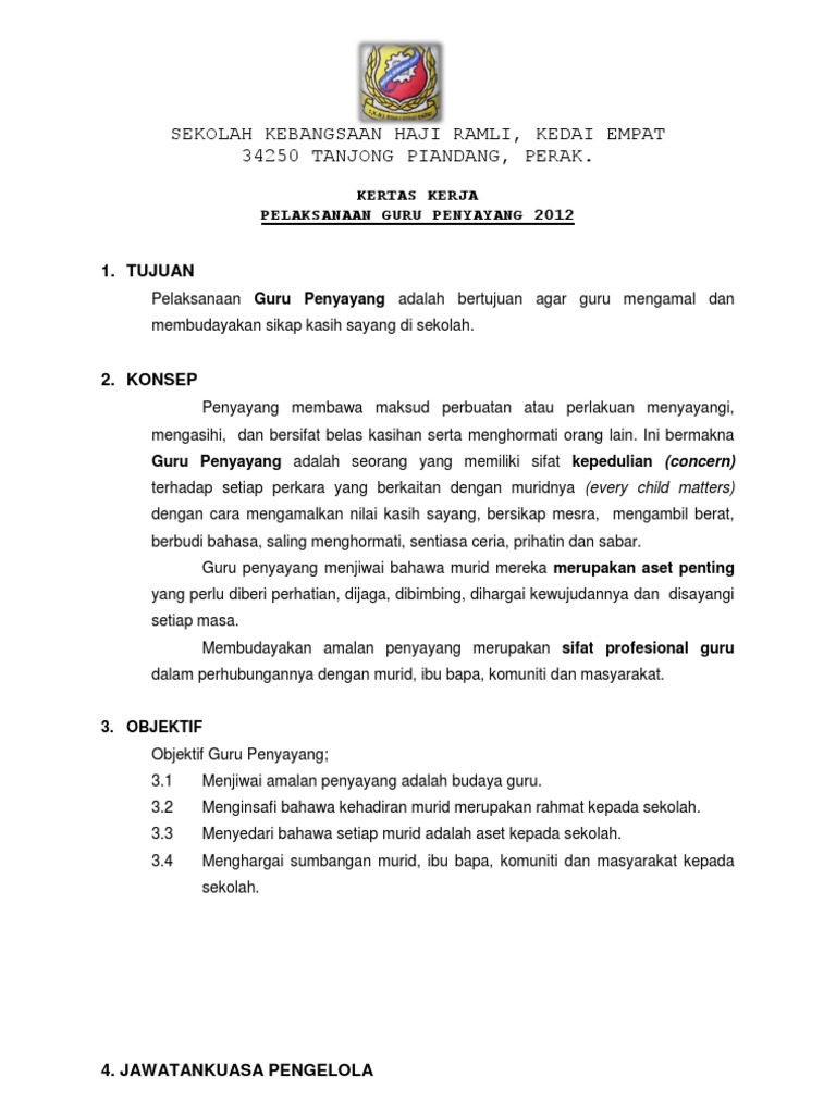 Contoh Kertas Kerja Guru Penyayang